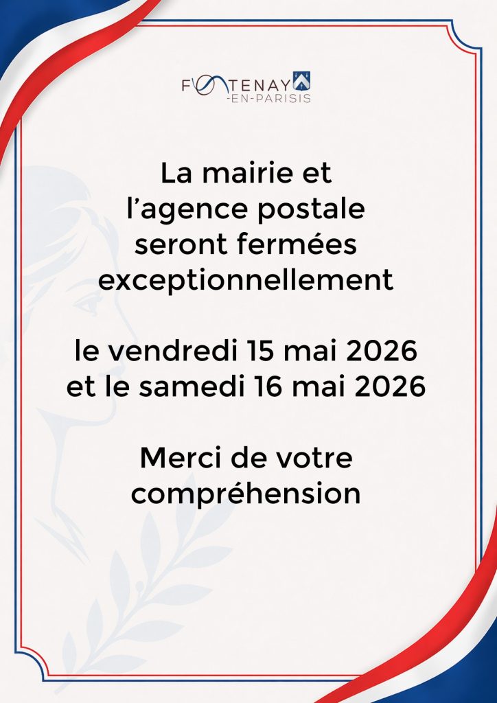 Fermeture de la mairie et de l’agence postale les 15 et 16 mai 2026